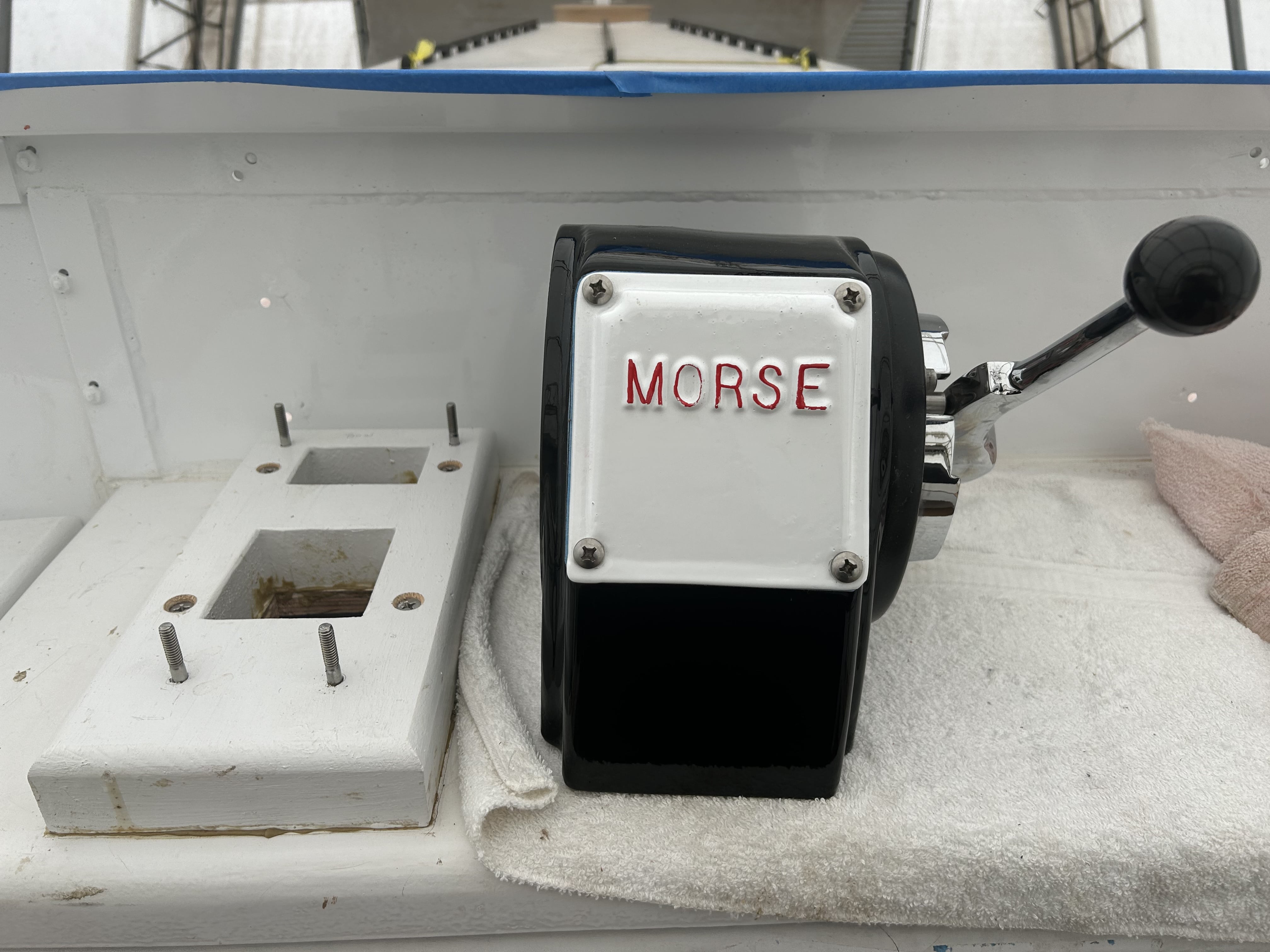 Propellor Shaft and Life Line Stanchions installed and ready for use. Refurbished Morse Controls ready to be installed.