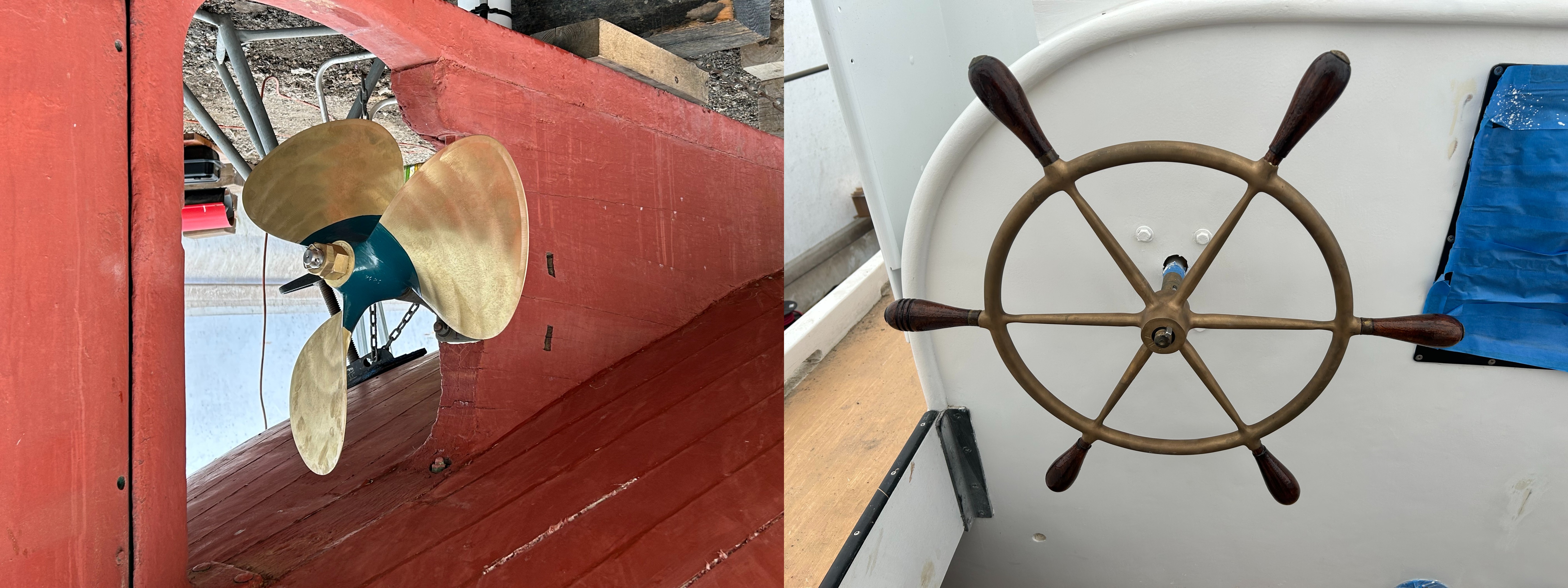 1952 era propeller installed on the 36538 22 March 2025 and our new helm.